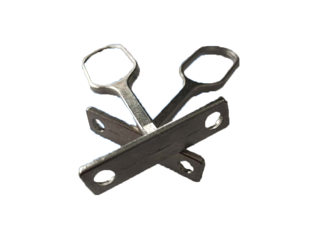 Fabricada en metal resistente con acabado plateado tipo níquel.